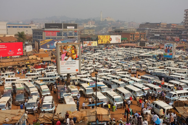 Центральный автовокзал в Кампале (столице Уганды). Маршрутки-«матату» — единственный вид общественного транспорта в городе с населением 1.7 млн человек