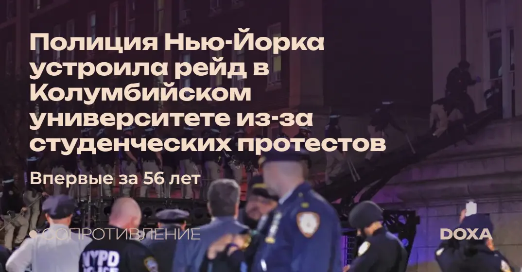 Полиция Нью-Йорка устроила рейд в Колумбийском университете из-за студенческих протестов. Впервые за 56 лет
