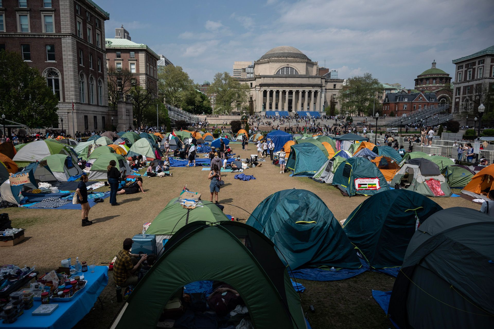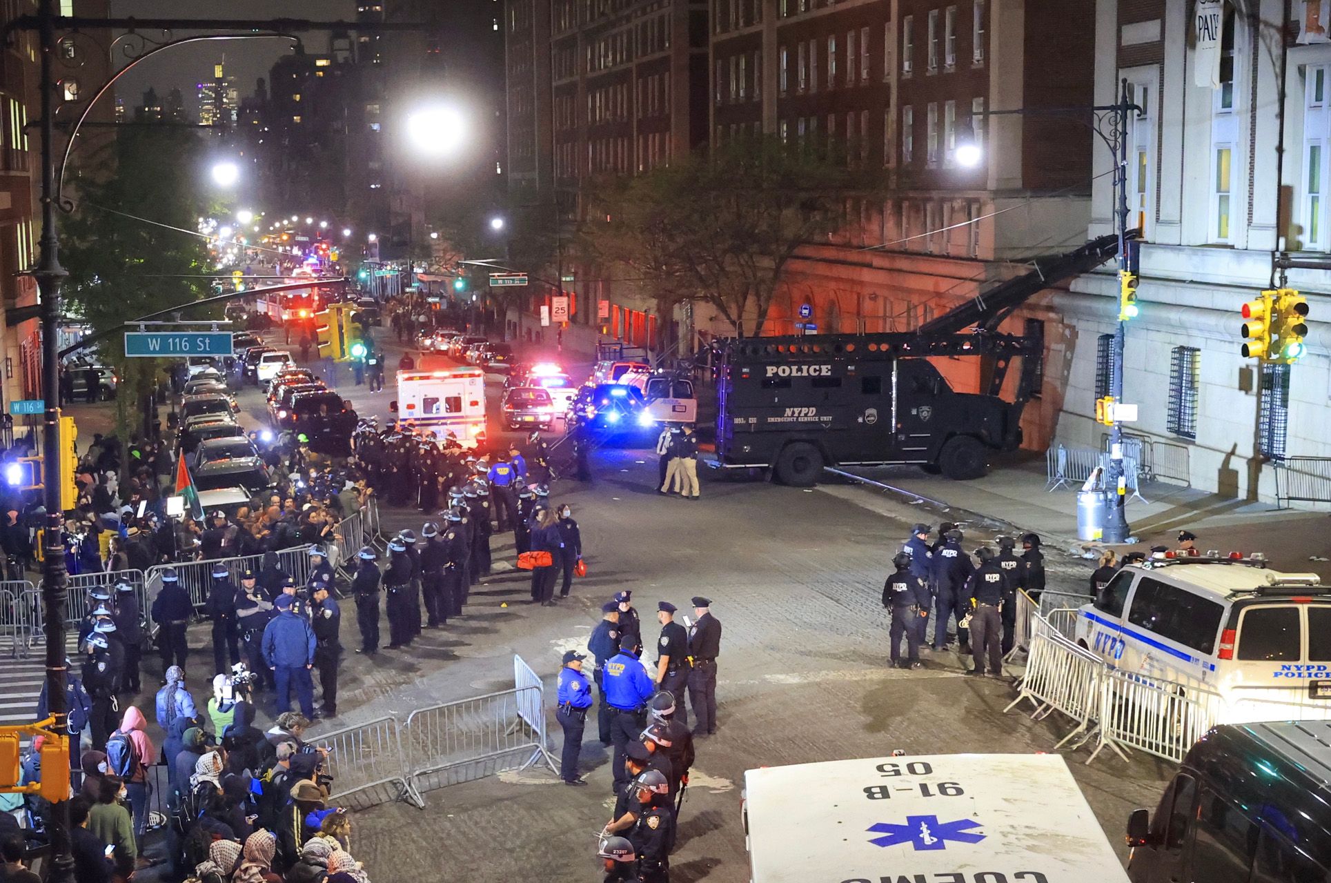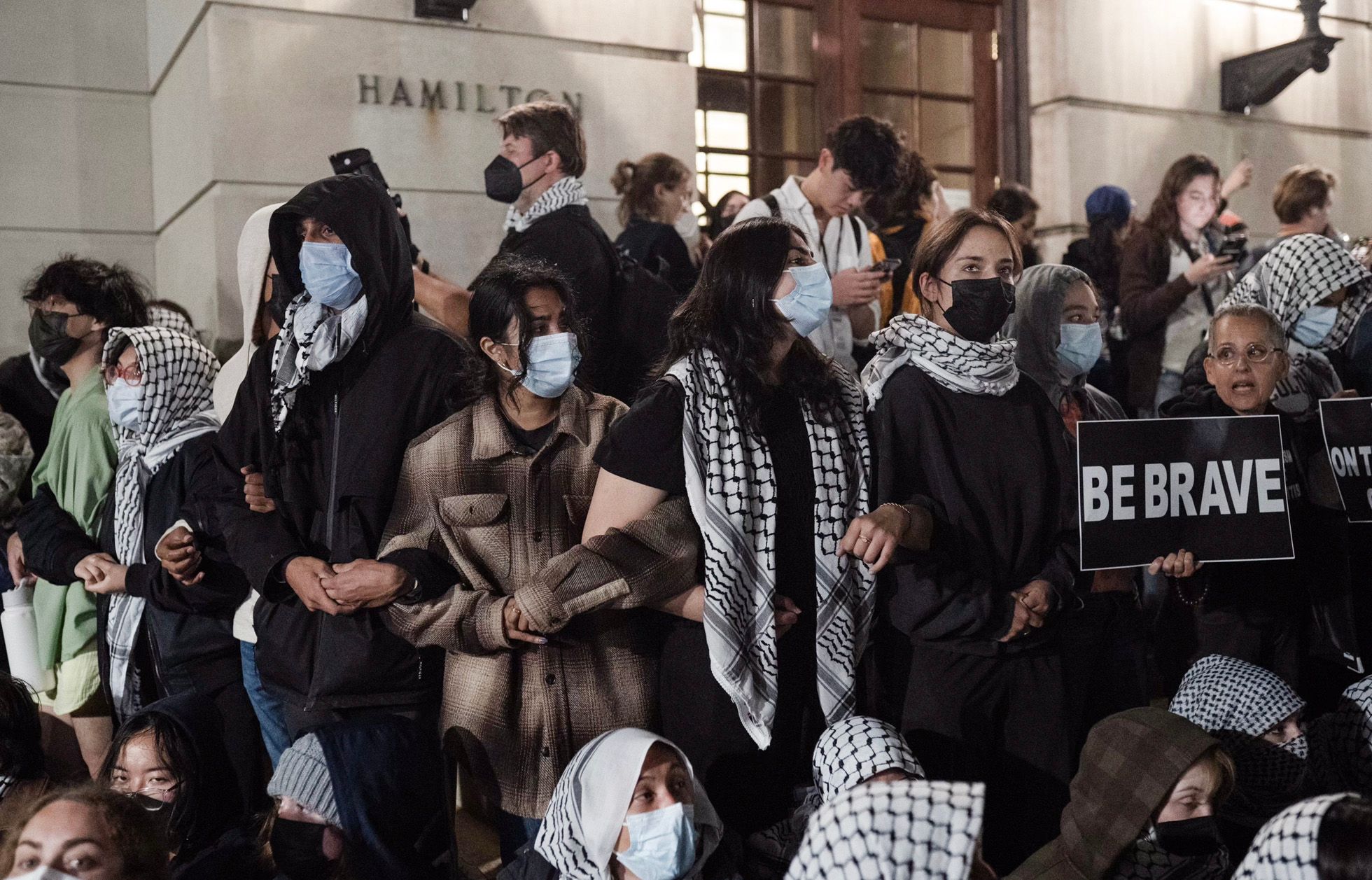 Пропалестинские протестующие 29 апреля захватили и забаррикадировали Гамильтон-холл — одно из главных зданий кампуса Колумбийского университета, где располагаются преимущественно административные офисы. Захват здания случился третий раз в истории, то же самое происходило в ходе студенческих волнений 1968-го и 1985 годов. Протестующим удалось продержаться в захваченном здании около 12 часов, после чего полиция осободила его в ходе рейда; около 300 человек были арестованы. Из-за захвата руководству университета пришлось перевести обучение в удаленный формат. Студенческие выступления в поддержку Палестины продолжаются и в кампусах других престижных вузов: Калифорнийского университета в Лос-Анджелесе, Техасского университета, Университета Северной Каролины в Чапел-Хилл и других. По подсчетам Associated Press, за две недели протестов полиция арестовала более тысячи пропалестинских активистов.