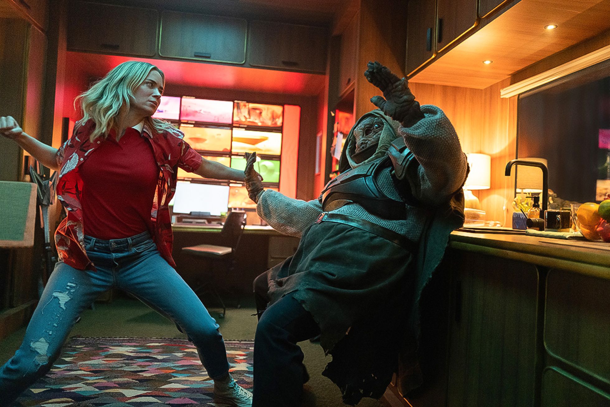 На главные роли позвали харизматичных звезд «Барбигеймера»: Райана Гослинга и Эмили Блант. Что логично: «Каскадеры» иронизируют над маскулинностью, как в «Барби», а еще там есть управляемые взрывы — как в «Оппенгеймере». Гослинг, который уже играл каскадера-романтика в «Драйве», раскачался для роли до невероятных размеров, и в физической комедии ему нет равных. На протяжении двух часов он бегает, прыгает, падает, дерется и горит, сохраняя беспечную ухмылку на лице.