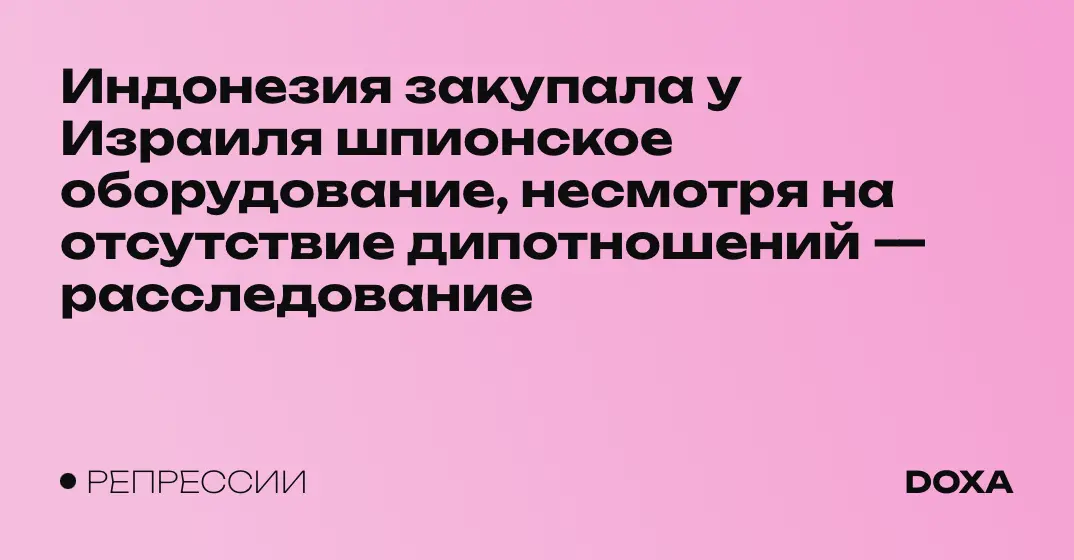 Индонезия, у которой нет дипломатических отношений с Израилем, смогла приобрести израильские шпионские технологии. Это выяснили расследователь:ницы из Amnesty International, израильского издания Haaretz, индонезийского Tempo, греческого Inside Story, швейцарских WAV и WOZ Die Wochenzeitung.