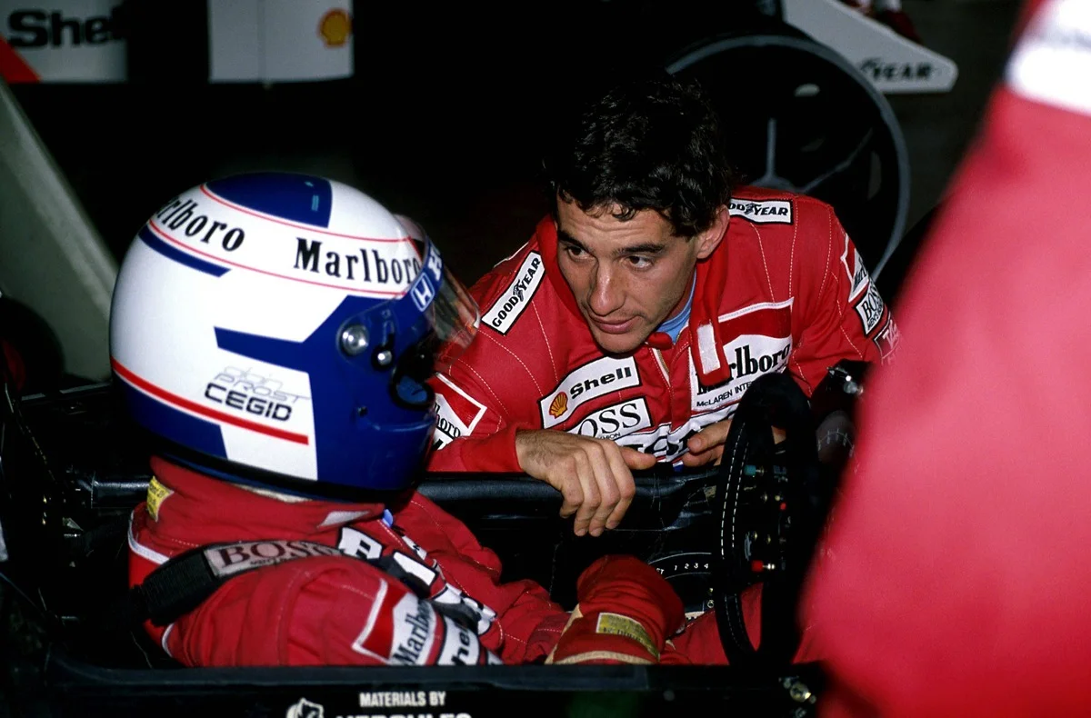 Описывать легендарные гонки на «Макларене» я не собираюсь. Это надо было наблюдать и слышать в прямом эфире. Чтобы прочувствовать и понять, почему им, умевшим вытворять и обгонять, особенно в жуткие ливни, так восхищались. Его соперничество с Аленом Простом — это потрясающие кайфовые сюжеты. Осторожный и аккуратный француз против взрывного и отчаянно рискующего бразильца. Ох, как они рубились! И на трассе, и в паддоке, и на пресс-конференциях…