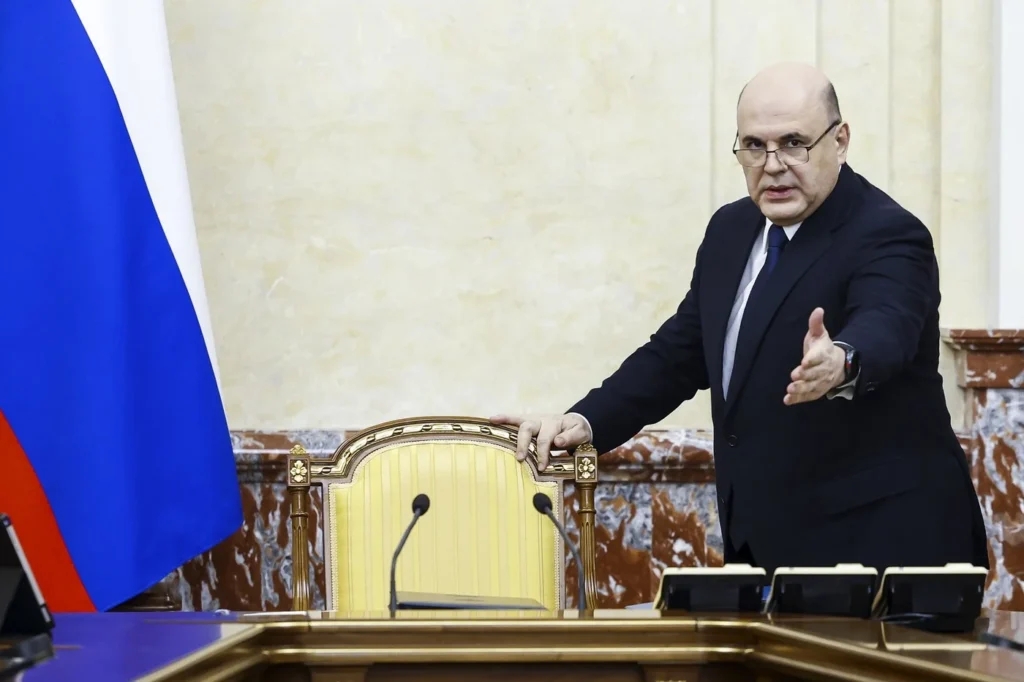 Премьер-министр России Михаил Мишустин во время начала заседания кабинета министров в Москве, 11 апреля 2024 года. Фото: Dmitry Astakhov, Sputnik, Government Pool Photo via AP/Profimedia.