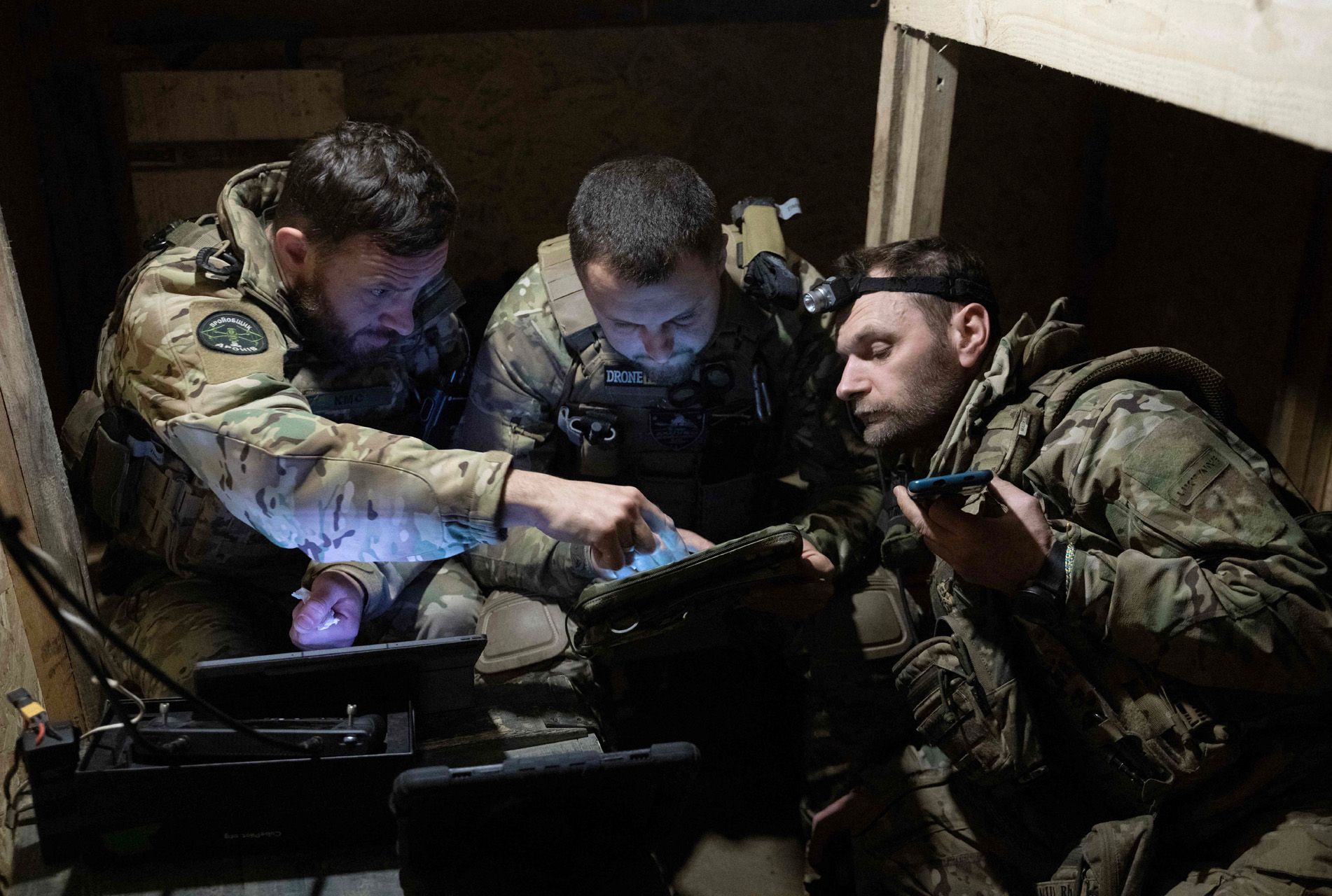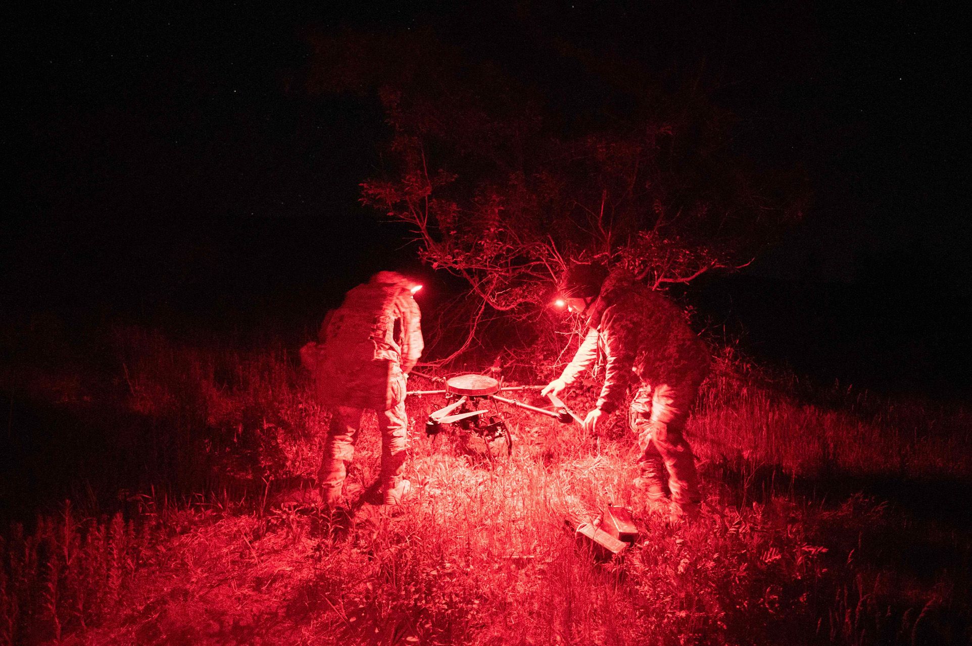 Genya Savilov / AFP / Scanpix / LETA Один из самых эффективных дронов, применяемых ВСУ, — Vampire. Это настоящий «бомбардировщик» среди беспилотников, созданный на базе технологии больших сельскохозяйственных БПЛА. Такой дрон умеет нести более 10 килограммов полезной нагрузки (например, сбрасывать несколько противотанковых мин таким весом— или десятки гранат; а также доставлять лекарства и другие необходимые продукты бойцам на передовую) и за счет тепловизоров работает ночью — когда боевые части на фронте, измученные дневными налетами дронов, пытаются получить снабжение и подкрепленияGenya Savilov / AFP / Scanpix / LETA На фото военнослужащие батальона «Ахиллес» 92-й отдельной штурмовой бригады ВСУ готовят тестовый запуск одного из «Вампиров» на востоке Донецкой области. «Ахиллес» — это специализированный батальон беспилотных авиационных комплексов, выросший из одноименной роты. Такие структуры во все большем количестве появляются в рядах ВСУ с целью эффективной разведки и нанесения беспилотных ударов по позициям ВС РФGenya Savilov / AFP / Scanpix / LETA Дроны Vampire часто выступают и в качестве ретранслятора связи для более мелких БПЛА, позволяя тем наносить удары на большее расстояние. Российские войска называют такие аппараты «Баба-яга» — признавая тем самым их высокую эффективностьGenya Savilov / AFP / Scanpix / LETA На фото бойцы «Ахиллеса» встречают «Вампира», успешно вернувшегося с боевой миссии в ночь на 1 мая близ города Часова Яра. Российская армия в последние недели готовит штурм Часова Яра — после чего может перейти в самое крупное наступление с лета 2022 года