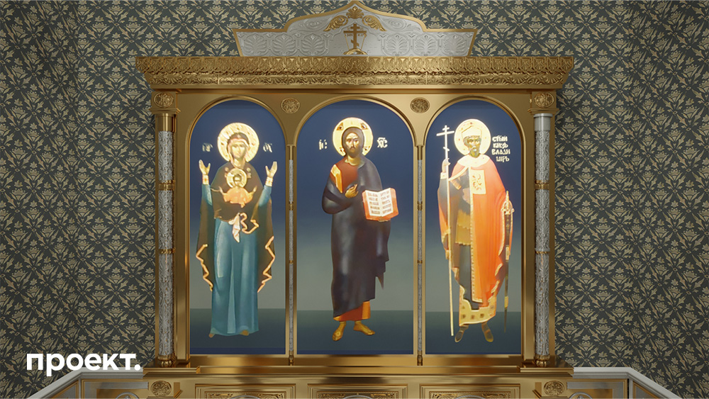 - Обычно триптих состоит из икон Богородицы, Иисуса Христа и либо Иоанна Предтечи, либо Николая Чудотворца. Однако во дворце третьей оказалась икона святого князя Владимира. Это может свидетельствовать о том, что владелец разместил изображение своего небесного покровителя и носит имя Владимир, сказал «Проекту» протоиерей Андрей Кордочкин («Проект» предоставил эксперту лишь фотографию триптиха, но не говорил, где именно он находится).
