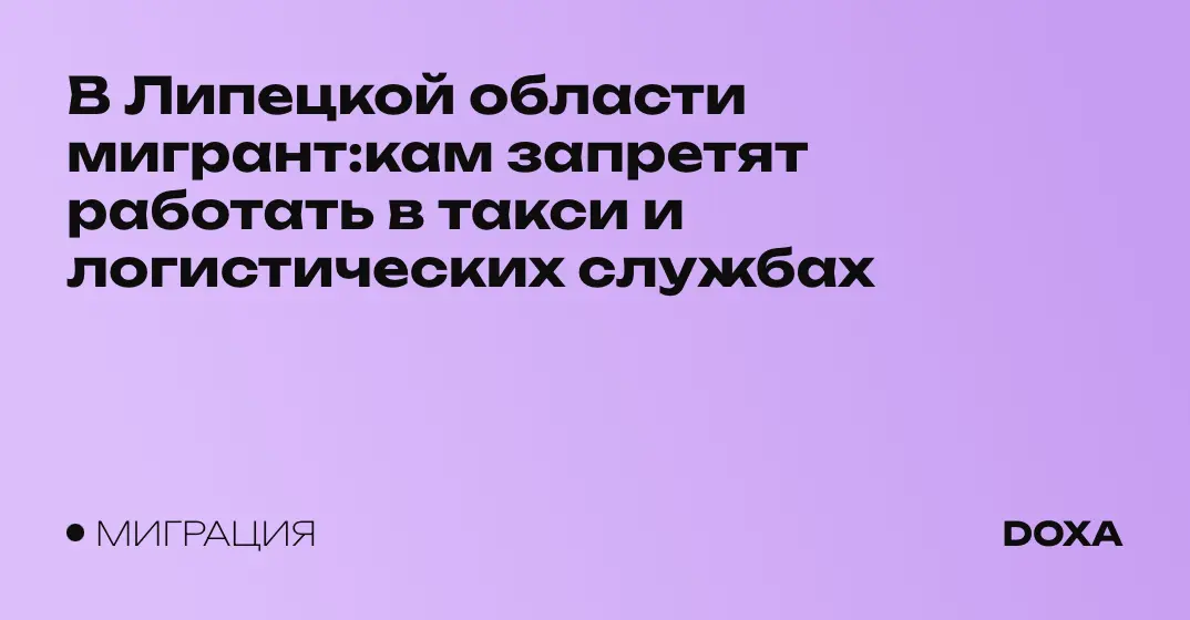 Правительство Липецкой области приняло решение «о запрете привлечения иностранных работников по патенту по нескольким направлениям, в том числе в такси и логистике», сообщается в соцсетях правительства.