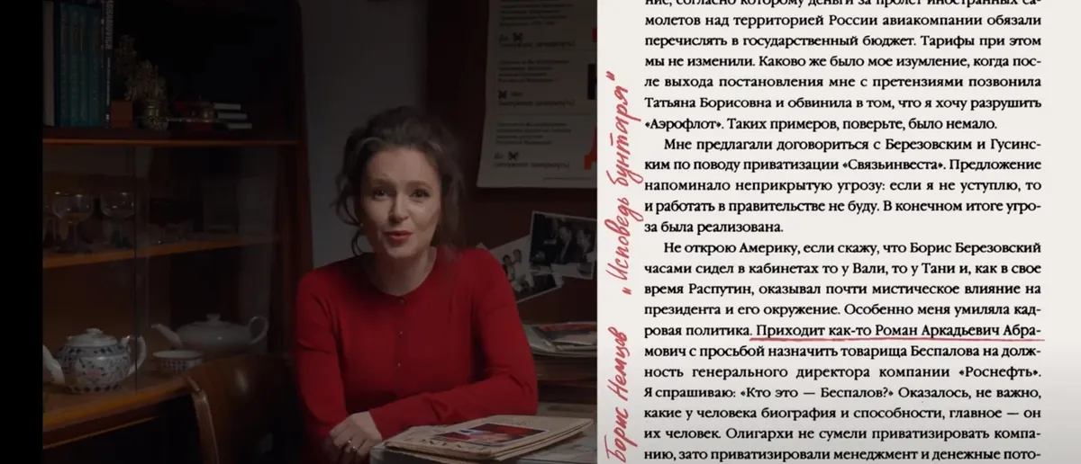 Конечно, я не готова оправдывать коррупцию, но угол зрения на факты, мне кажется, выбран слишком ограниченный и поэтому несколько примитивный. В результате не создается правдивой картины 90-х, что опасно, учитывая доверие молодых людей к их расследованиям. Мы можем получить общество революционеров, ненавидящих успешных, предприимчивых, неординарных людей, которые реально были гениальным двигателем 90-х. Они вытащили страну, и нельзя позволить перечеркнуть эту правду за счет правды о коррупции. Вот в этом мои серьезные опасения. Я их подкрепляю разговором с дочкой, которая смотрит фильм и спрашивает меня о тех событиях».