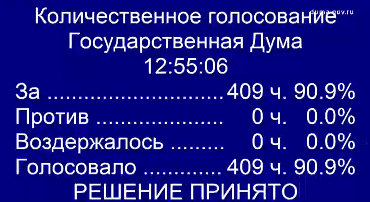 Госдума сразу во втором и третьем, заключительном чтении приняла поправки в закон №67-ФЗ «Об основных гарантиях избирательных прав и права на участие в референдуме граждан Российской Федерации».
