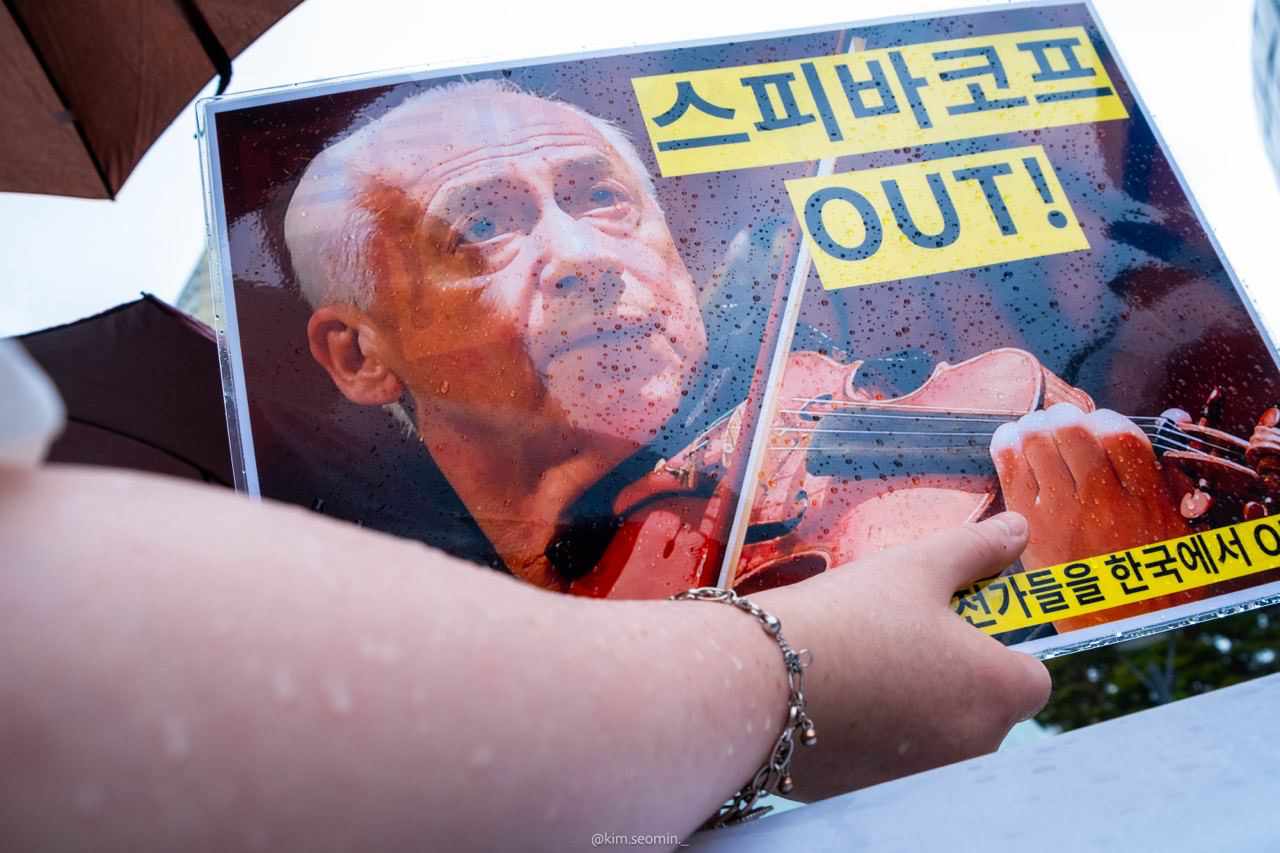 В случае если выступление Владимира Спивакову не будет отменено, участники митинга грозят пикетировать его концерт 8 мая в Lotte Concert Hall в Сеуле.