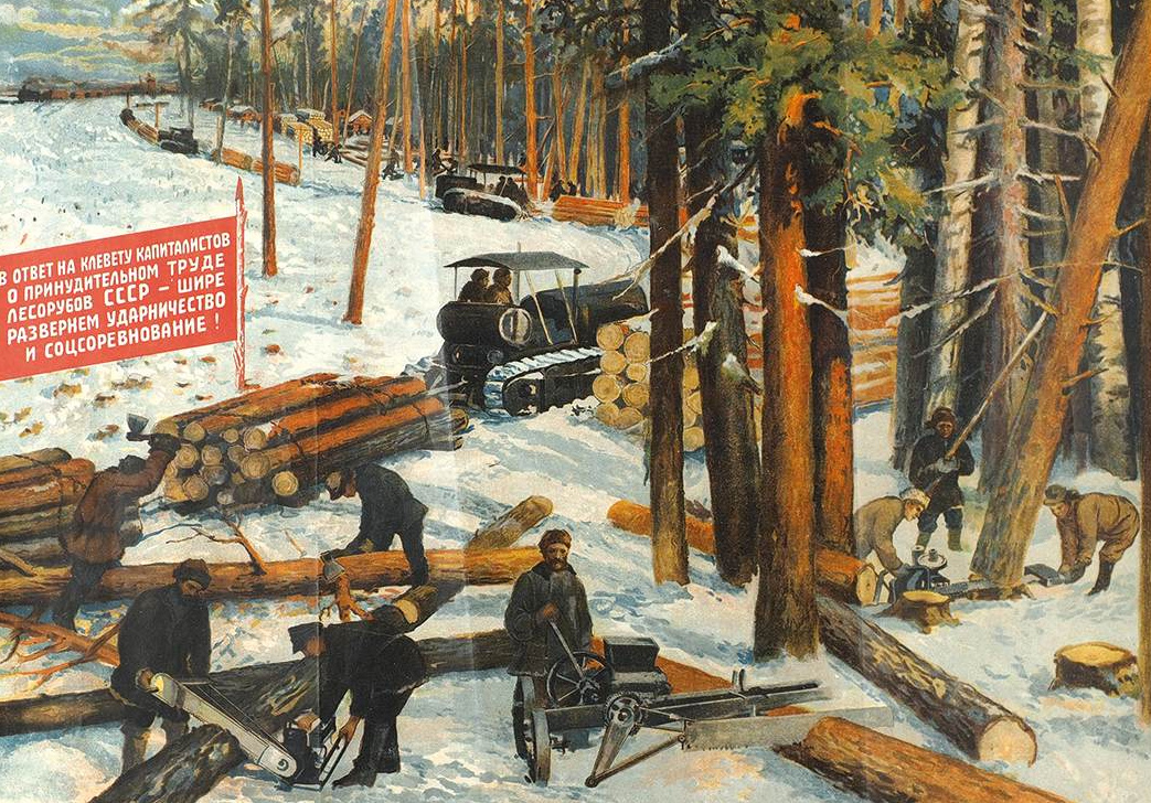 Раскулачивание и последующие волны репрессий сделали добычу древесины еще дешевле. Лесоповал стал основным "профилем деятельности" лагерей на Севере, в Западной и Восточной Сибири.