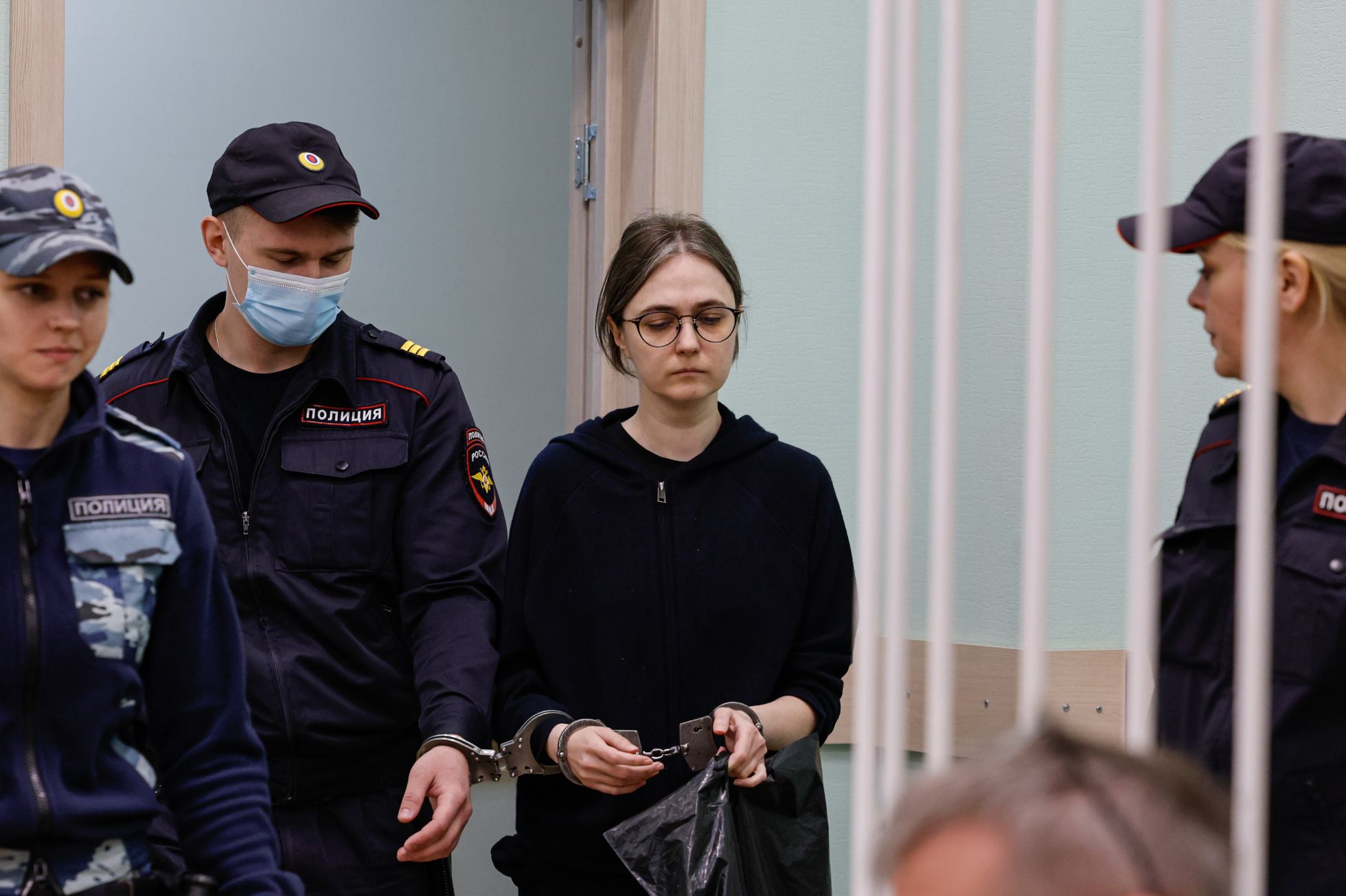 «Ваша честь, позвольте дочери обняться с матерью!» — кричит адвокат Воропинова в спину судье Становскому, пока тот идет к выходу из зала. Приставы снова встают на пути у Алисы, которая пытается подойти к матери. Они объясняют адвокату, что судья мог дать разрешение Алисе во время заседания, но теперь разбирательство завершено, приговор оглашен.