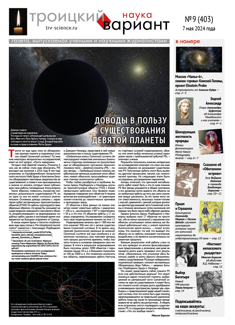 ТрВ № 9 (403) за 2024 г.: Доводы в пользу существования девятой планеты - Троицкий вариант — Наука