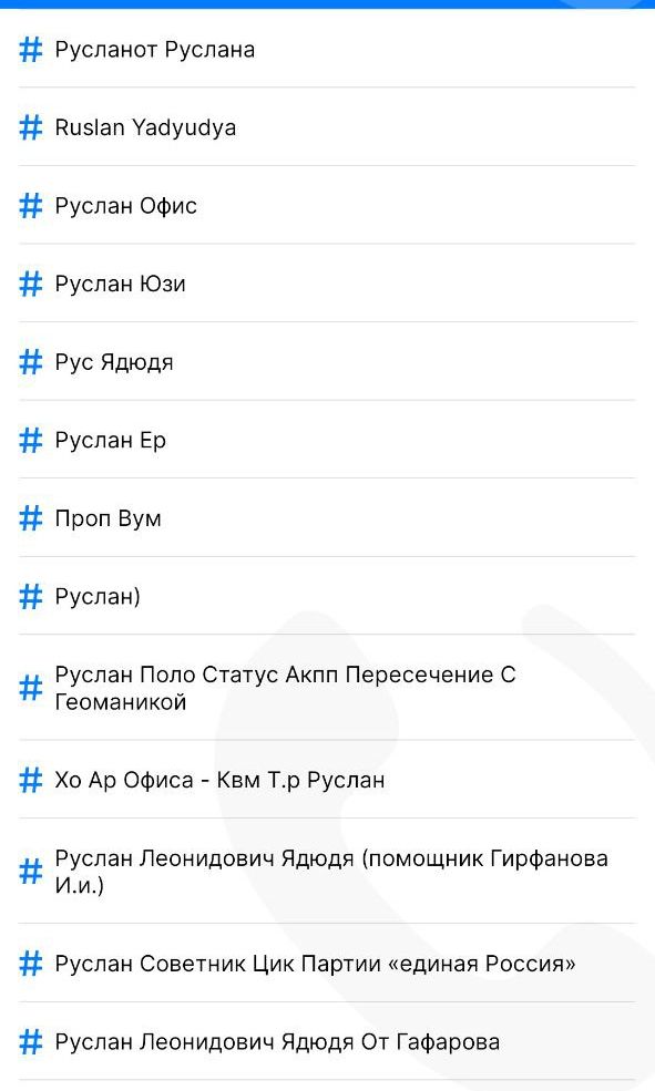Согласно приложению Getcontact, которое позволяет узнать, как тот или иной номер записан у других пользователей, номер Ядюди сохраняли как номер помощника Гирфанова И. И. Это замруководителя политуправления «Единой России», член правления общероссийского общественного движения «Корпус «За чистые выборы» Ильнар Гирфанов. Корпус этот — прокремлевское образование. Его цель — своими заявлениями создавать видимость, что в России есть выборы, и они честные.