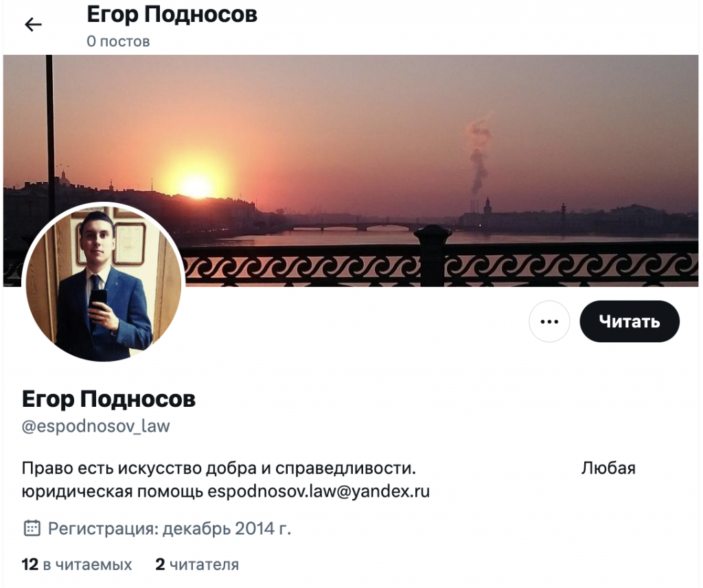 Почему такой выбор подзащитных? Наверное, потому что «право — есть искусство добра и справедливости», как гласит статус Подносова в социальной сети X.
