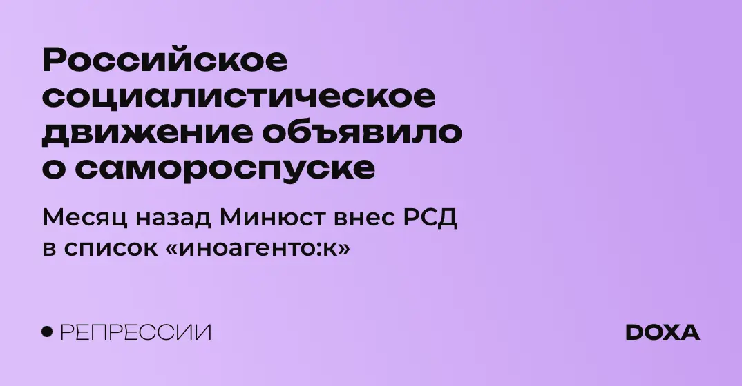 Российское социалистическое движение объявило о самороспуске, о чем появилась публикация в твиттере организации. 5 апреля 2024 года Минюст внес РСД в список «иноагенто:к».