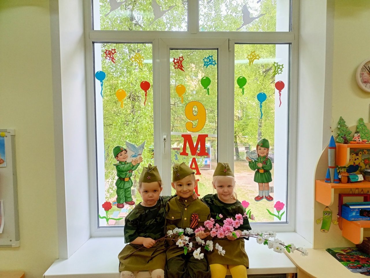 Во многих школах и детсадах России в эти дни проходит акция "Окно победы". А в детском садике № 13 в городе Усть-Катаве Челябинской области с малышами накануне 9 мая встретились волонтеры штаба "Содействие воинам Отечества", вместе с детьми они изготавливали поделки и рисовали для бойцов на передовой. Затем для детей постарше были организованы экскурсии в штаб, где дети, рассказывают местные СМИ, скручивали ленты в рулончики и "привязывали элементы маскировки на костюм Лешего".