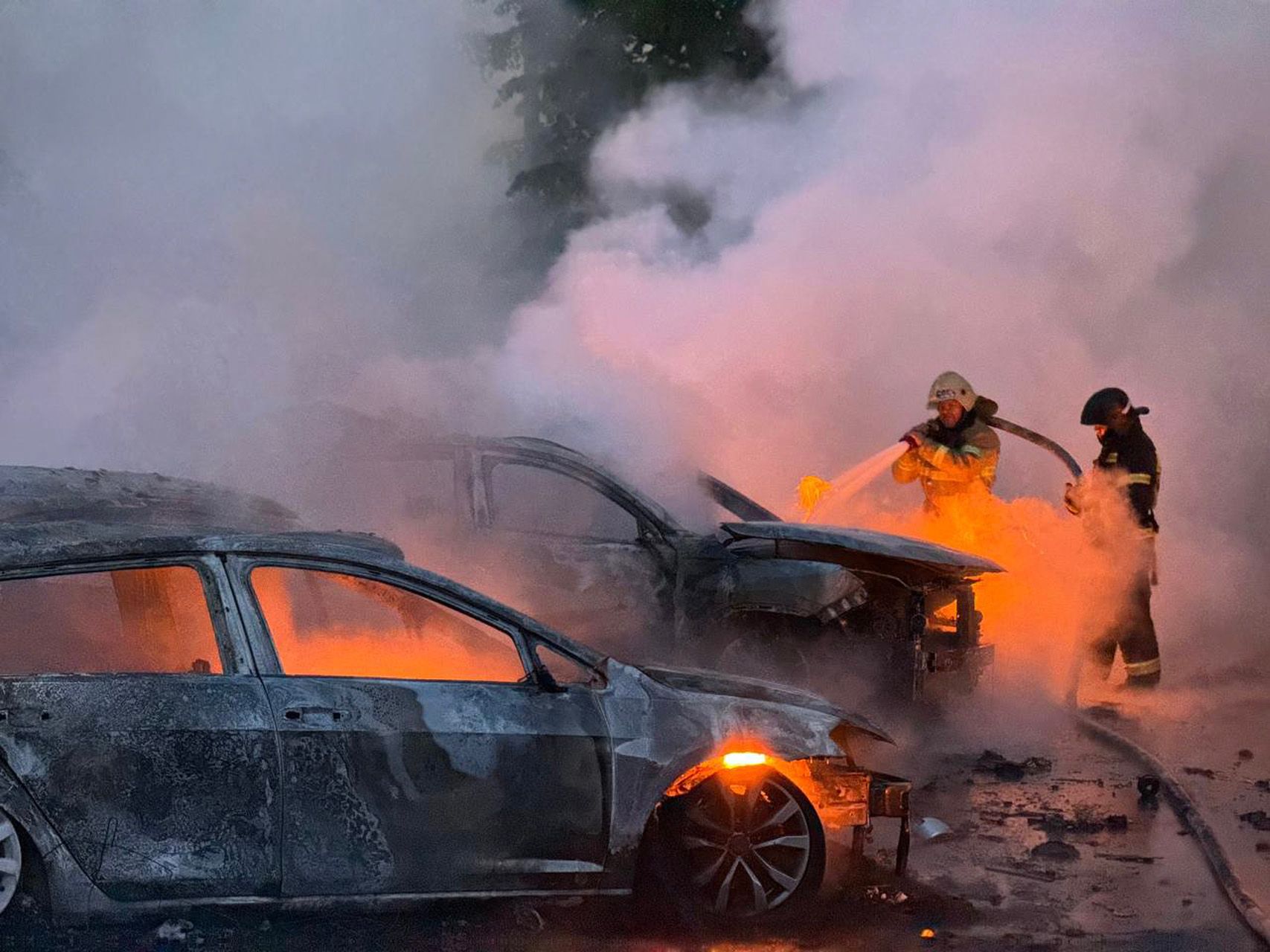 Пожарные тушат горящие машины в Белгороде. Путин смотрит парад Победы с военными из Бучи. Украинские артиллеристы обороняются под Авдеевкой