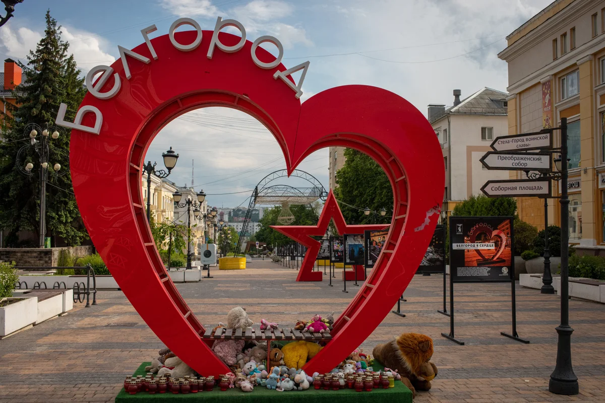 «11 раненых — в Белгороде, одна погибшая — в Новой Таволжанке — вот такой у нас день Победы», «в Москве — сегодня салют, а у нас — свои “салюты”», «день Победы — а город пуст», — с утра 9 мая с грустью писали в городских чатах белгородцы и после ночных обстрелов со стороны ВСУ не спешили покидать свои дома. По меньшей мере, до полудня солнечный, пышно цветущий и празднично украшенный город выглядел если не вымершим, то крепко уснувшим. Редкие машины пролетали по городским магистралям. Только ветер гулял по пустым аллеям в Парке Победы. Никого не удалось встретить на центральных улицах, где раньше, с рассвета до заката 9 мая, играл духовой оркестр, звучали фронтовые песни, кормили солдатской кашей. Даже у Вечного огня на главной площади города — Соборной — ни души, кроме нескольких скучающих полицейских, бойцов теробороны и двух бригад «Скорой помощи». Здесь, правда, для создания соответствующей атмосферы крутили репертуар от Марка Бернеса до Олега Газманова.