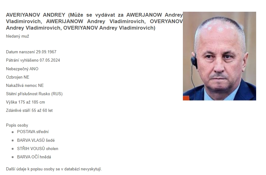 Как подчеркивает издание, в карточке розыска Аверьянова напротив графы «Опасен» стоит отметка «Да». Ранее имя Аверьянова фигурировало в расследованиях о взрывах на военных складах компании Imex во Врбетице в 2014 году — там хранились боеприпасы фирмы болгарского бизнесмена Эмилияна Гебрева, который, предположительно, поставлял оружие в Украину в связи с войной на Донбассе.