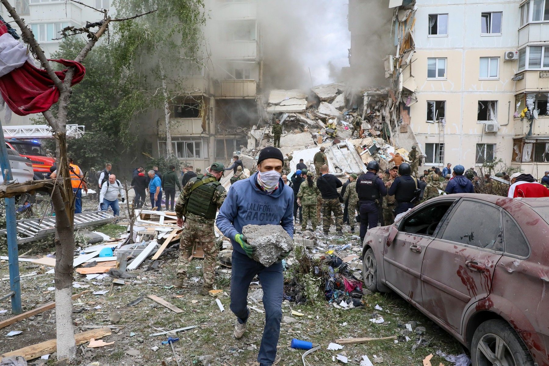 - Губернатор Вячеслав Гладков заявил, что подъезд обрушился из-за прямого попадания снаряда во время украинского обстрела. Минобороны РФ заявило, что дом пострадал из-за фрагментов сбитой украинской ракеты «Точка-У».