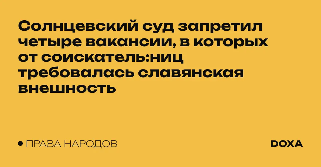 Солнцевский суд запретил четыре объявления о вакансиях, в которых от соискатель:ниц требовалась славянская внешность