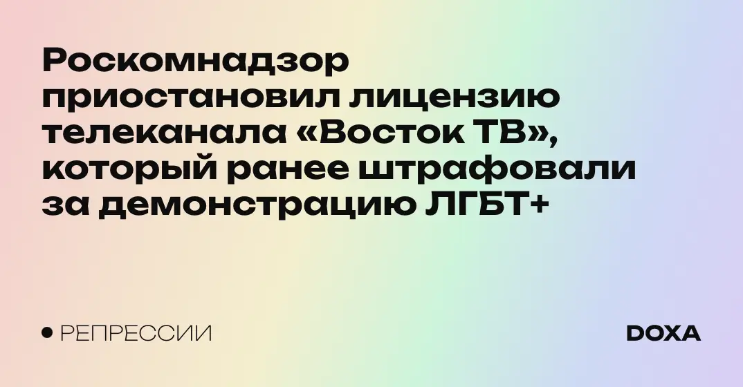 Роскомнадзор приостановил лицензию телеканала «Восток ТВ», который ранее штрафовали за демонстрацию ЛГБТ+