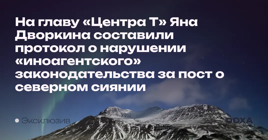 На главу «Центра Т» Яна Дворкина составили протокол о нарушении «иноагентского» законодательства за пост о северном сиянии