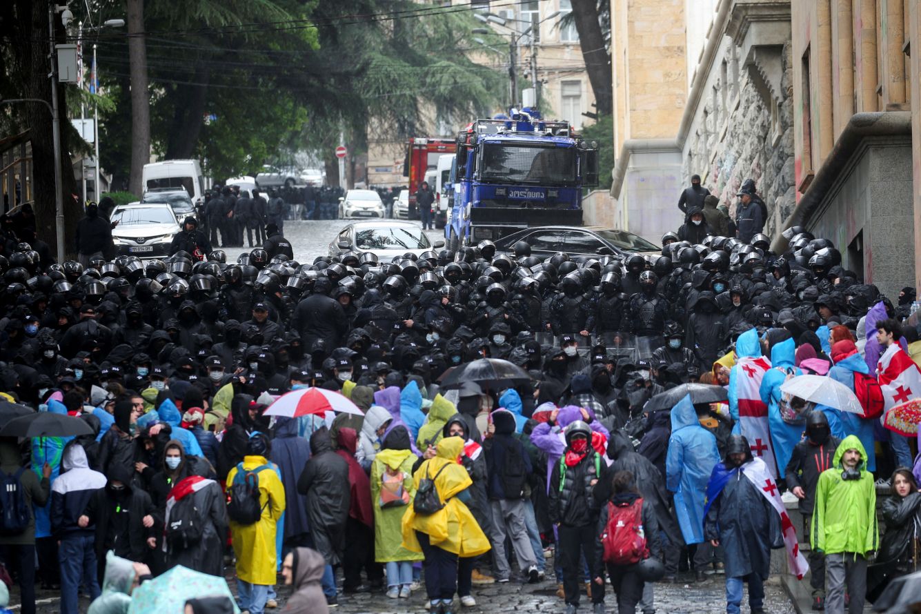 Видел, как 2 мая из двора парламента в протестующих пуляли из водометов и кидали газовые гранаты. А рядом тогда шли строительные работы — и ребята начали их разбирать, передавать друг другу по цепочке [доски], чтобы в итоге самые смельчаки забаррикадировали одну из дверей парламента и защитили остальных. Вокруг стояли люди с флагами Грузии и Евросоюза. Даже костер развели, чтобы согреться.