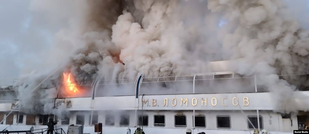 "Ломоносов" загорелся вечером 13 мая, судно находилось на ремонте. В тушении пожара участвовали 12 единиц техники и 4 буксира. В районе двух часов ночи пожар удалось локализовать, но теплоход стал крениться. Пожарные эвакуировались с судна и продолжили бороться с огнём с причала. В 08:50 пожар погасили. О пострадавших не сообщается.