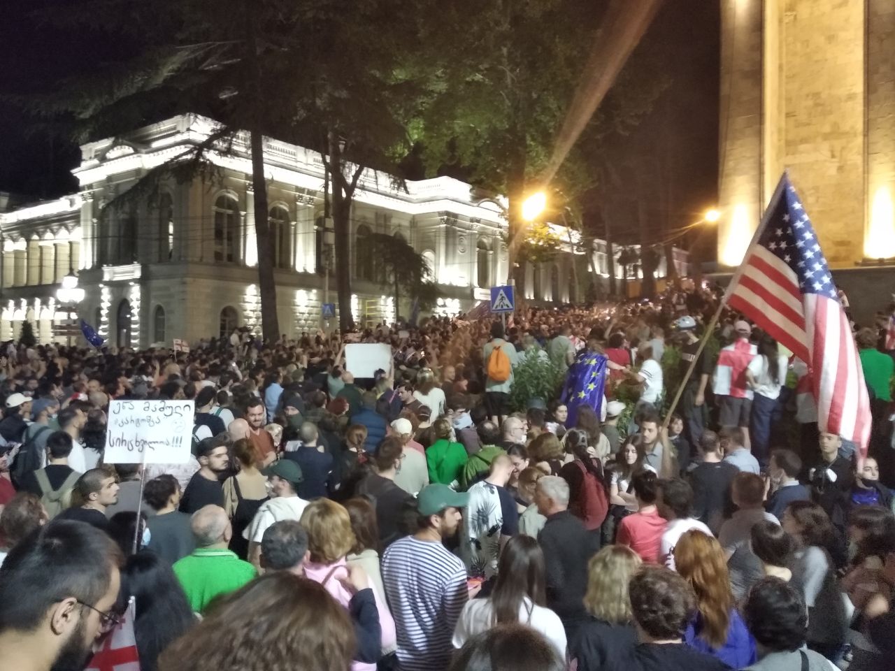 Протесты начались с 15 апреля, а 17 апреля законопроект был принят грузинским парламентов в первом чтении. С тех пор протесты в стране не прекращались. С 9 марта протестующие включили в список своих требований не только отзыв закона и освобождение всех задержанных на митингах граждан, но и отставку правительства с проведением досрочных парламентских выборов. Не исключено, что митинги продолжатся и в случае принятия закона.