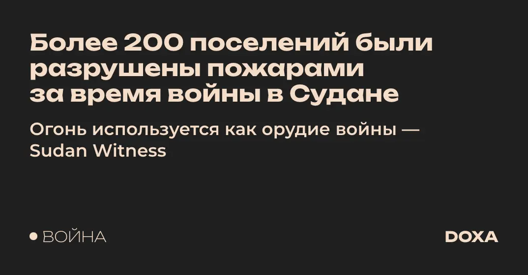 201 поселение было повреждено или полностью уничтожено пожарами за время гражданской войны в Судане. Максимальное количество таких случаев — 72 — зафиксировали в апреле 2024 года. Разрушения отслеживает и фиксирует проект Sudan Witness.