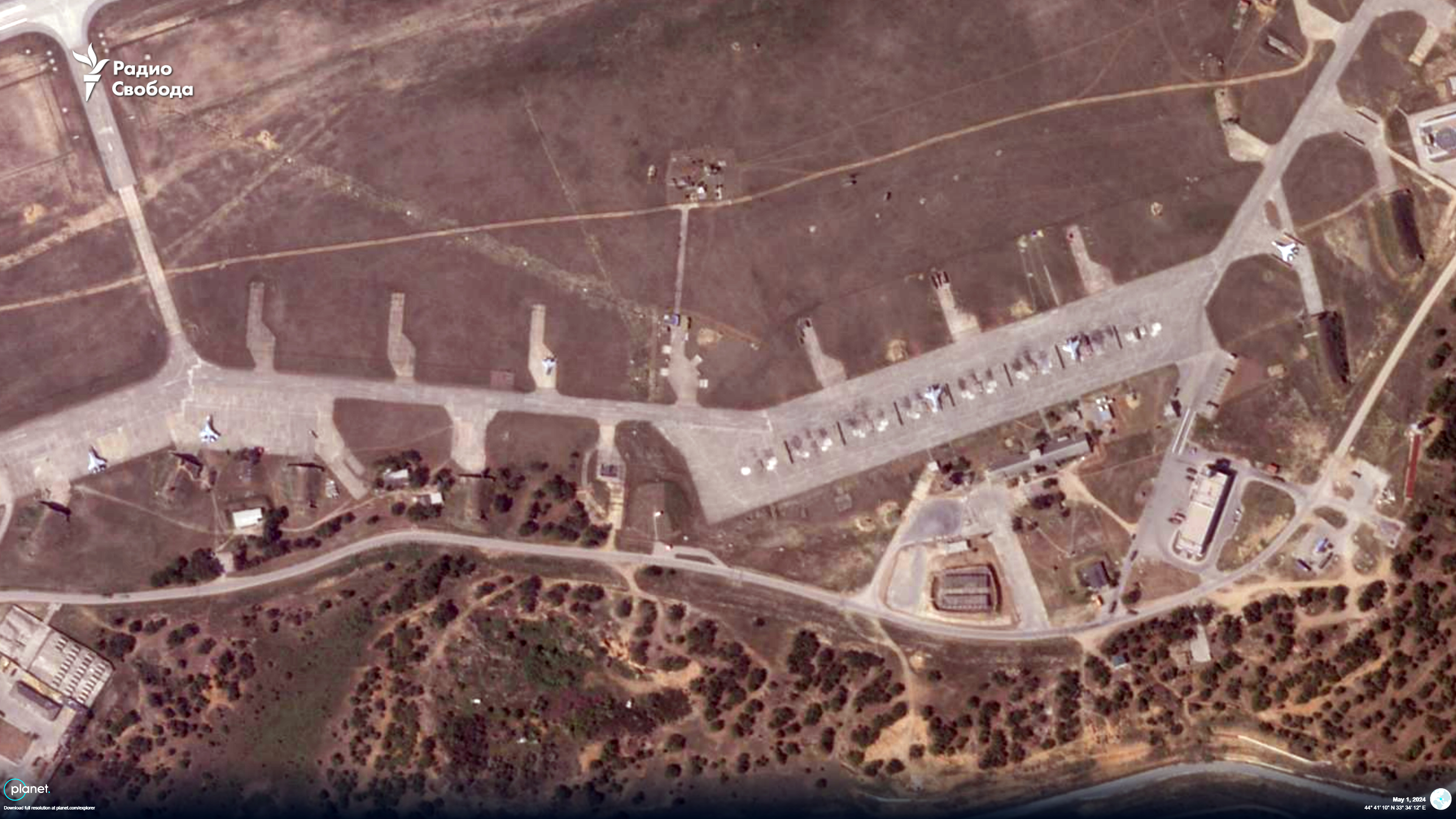 Спутники подтверждают, что 15 мая возник пожар в районе российской авиабазы Бельбек. Соответствующие снимки опубликованы на сайте мониторинга пожаров NASA. На фото видно, что множественные очаги пожаров находятся южнее взлетно-посадочной полосы. Именно там находятся стоянки военных самолетов.
