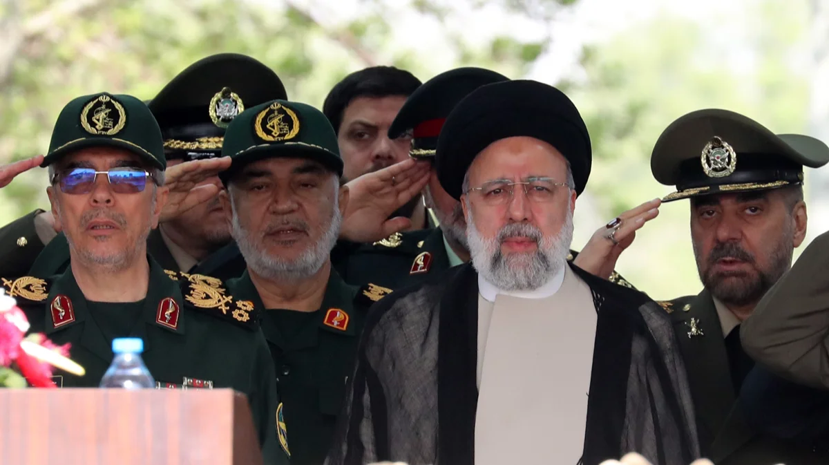 Президент Ирана Эбрахим Раиси в окружении генералов КСИР и армии Ирана на военной базе в Тегеране, Иран, 17 апреля 2024 года. Фото: Abedin Taherkenareh / EPA-EFE