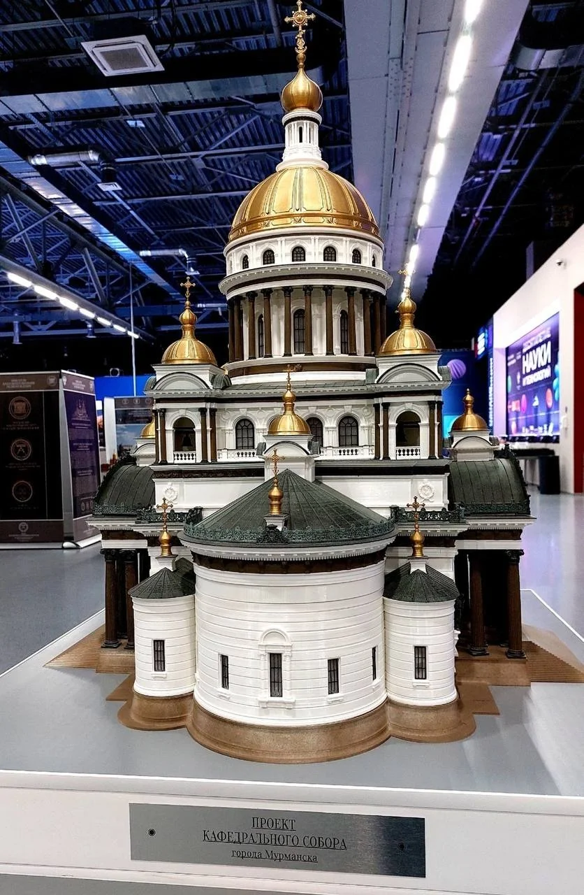 Ну а затем появилось постановление горадминистрации об увеличении предельно разрешенной высоты постройки с 30 до 70 метров. Правда, по какому проекту будет строиться этот культовый небоскреб, неясно: в соцсетях митрополия и лояльные Чибису медиа публикуют один проект, а на мурманском стенде на ВДНХ показали другой, отвергнутый прежде патриархом.