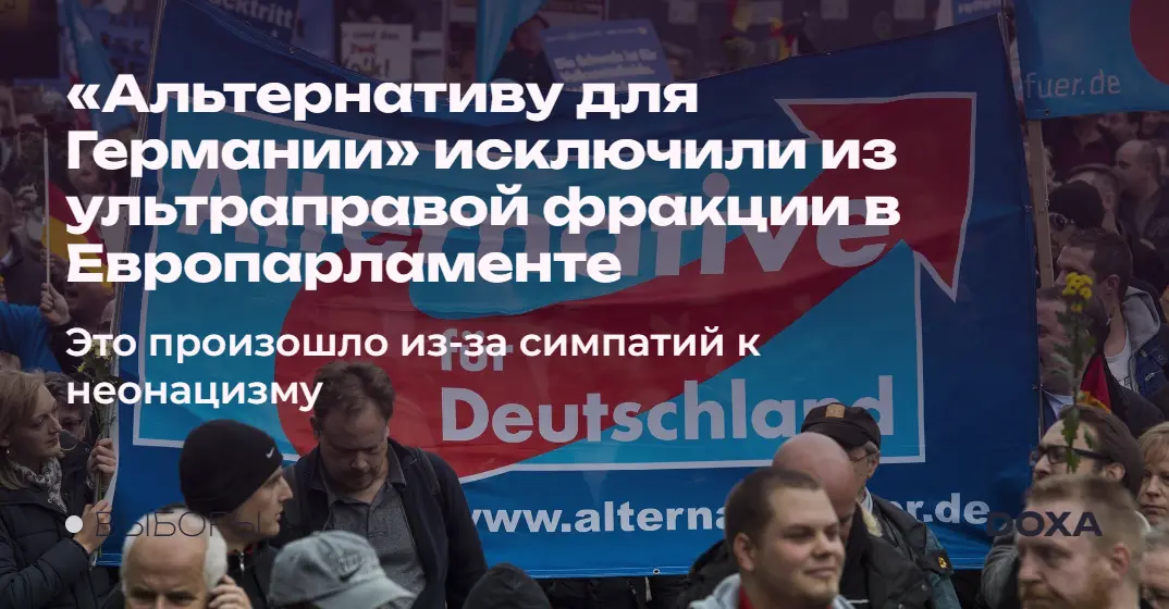 Германскую партию «Альтернатива для Германии» (АдГ) исключили из ультраправой фракции «Идентичность и демократия» в Европарламенте за симпатии к неонацистским идеям. Это произошло перед выборами в парламент ЕС, которые пройдут с 6 по 9 июня 2024 года.