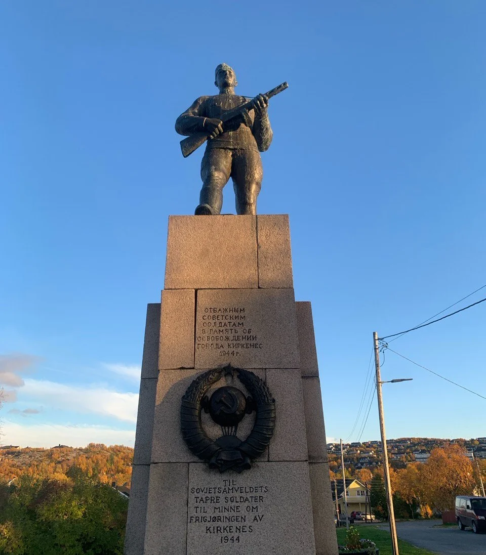 А в честь освобождения в Киркенесе стоит памятник советскому солдату, никто на него не покушается: цветы и венки.