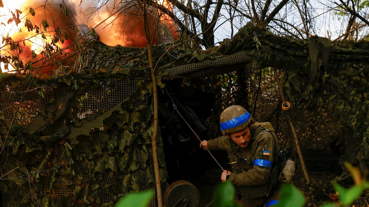 Украинский военнослужащий ведет огонь по российским войскам в Харьковской области, 21 мая 2024 года. Фото: Валентин Огиренко / Reuters / Scanpix / LETA