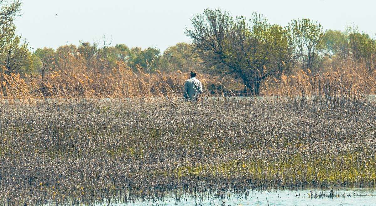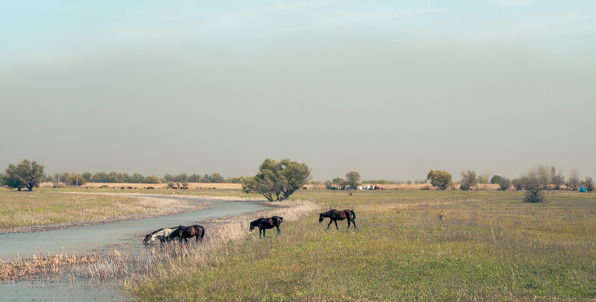 Чтобы получить полное представление о том, как выглядит жизнь в дельте Волги в конце апреля, достаточно просто провести несколько дней на берегу. Пестрые палаточные лагеря здесь вырастают везде, где есть ровная поверхность и выход к воде. Маленькие коммуны любителей рыбалки из разных регионов бывают весьма шумными, но отношения между ними, как правило, уважительные, даже приятельские: тут все на одной волне. Весной хорошо ловится и с берега, но некоторые берут с собой лодки — их не особо мощные моторы периодически разбавляют тишину характерным урчанием. Иногда мимо проносятся катера посерьезнее с публикой в ярких спасательных жилетах — это клиентов турбаз везут ближе к морю на самые рыбные места. Браконьеры тут тоже часть пейзажа.