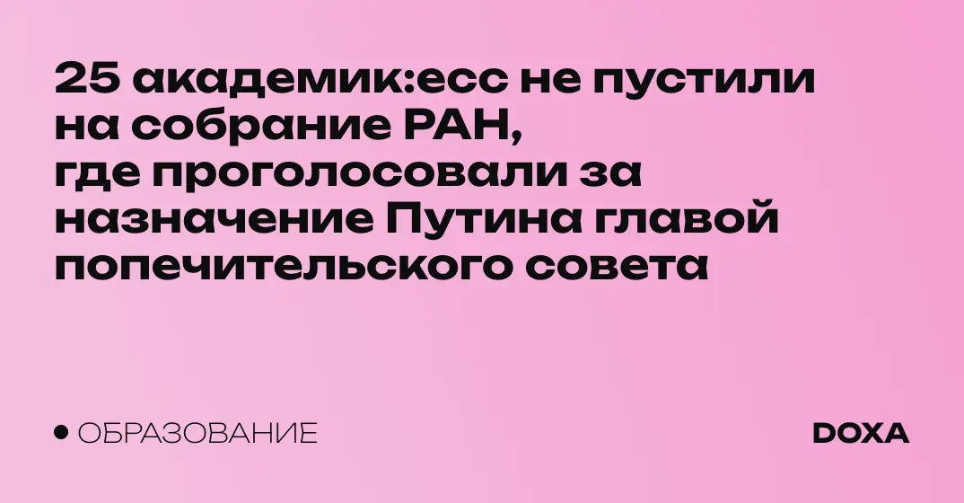 Охрана Российской академии наук не пустила 25 академик:есс на общее собрание, где голосовали за назначение Путина главой попечительского совета.