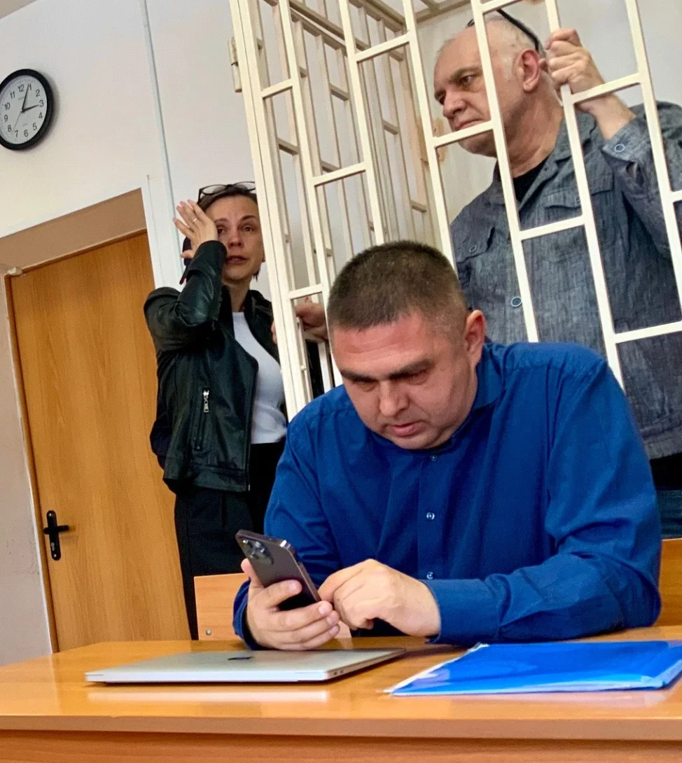Тем временем в перерыве Талантов начинает заикаться и тянет, тянет руку через прутья, чтобы погладить жену, а Оля размазывает запястьем слезы по лицу. Преодолевая неловкость, я исподтишка делаю фото айфоном — оно потом тоже пригодится для истории.