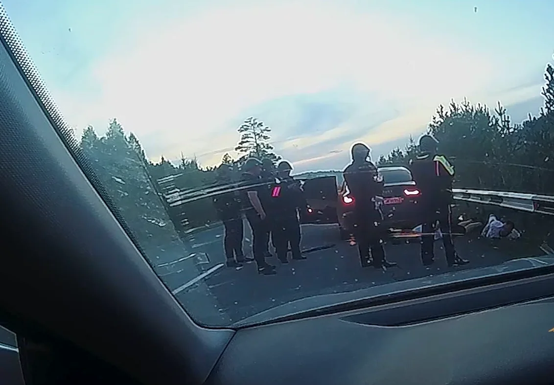 Уже на следующий день, в понедельник, красноярский главк МВД публикует кадры задержания «подозреваемого в убийстве жителя поселка Большая Ирба». Судя по видео, оно происходит в тот же воскресный вечер, в 21.12. Полицейские в касках, бронежилетах настигают «Ауди», принуждают остановиться. «Выходим, чтобы было видно руки! Руки, руки!» Берут двоих. Ащеула МВД по фамилии не называет. Исключительно «ранее привлекавшийся к уголовной ответственности за тяжкие преступления 39-летний местный житель п. Большая Ирба».