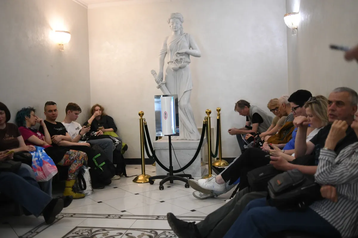 23 мая заседание началось с опозданием на шесть часов — в судебном зале с велюровыми зелеными креслами рассматривали апелляцию на арест начальника Главного управления кадров Минобороны Юрия Кузнецова. В соседнем зале зачитали приговор — 25 лет колонии Владимиру Малине, который поджег релейный шкаф в Подмосковье. Приставы не справлялись с журналистами — те бегали из зала в зал…