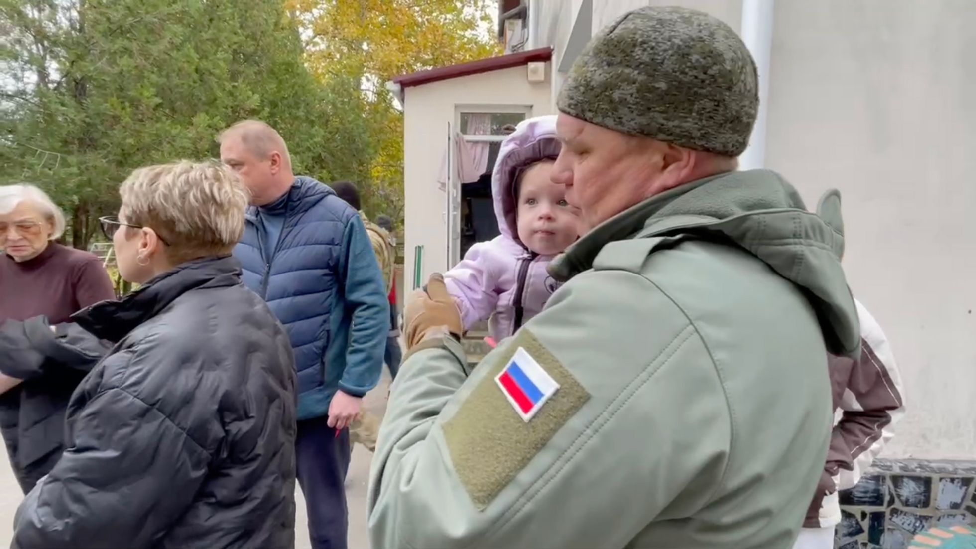 Канал Игоря Кастюкевича в Telegram Представители российских властей вывозят воспитанников Херсонского дома ребенка в аннексированный Крым, 21 октября 2022 года. С ребенком на руках — на тот момент депутат Госдумы РФ Игорь Кастюкевич
