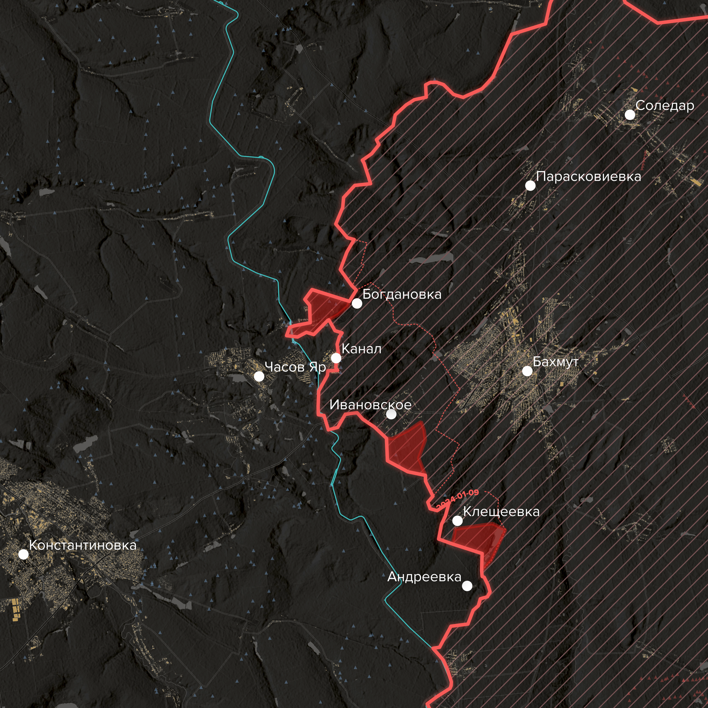 ВС РФ, вновь занявшие большую часть села Клещеевка к югу от Бахмута, расширяют зону контроля вокруг него. Была занята железнодорожная станция Алебастровая