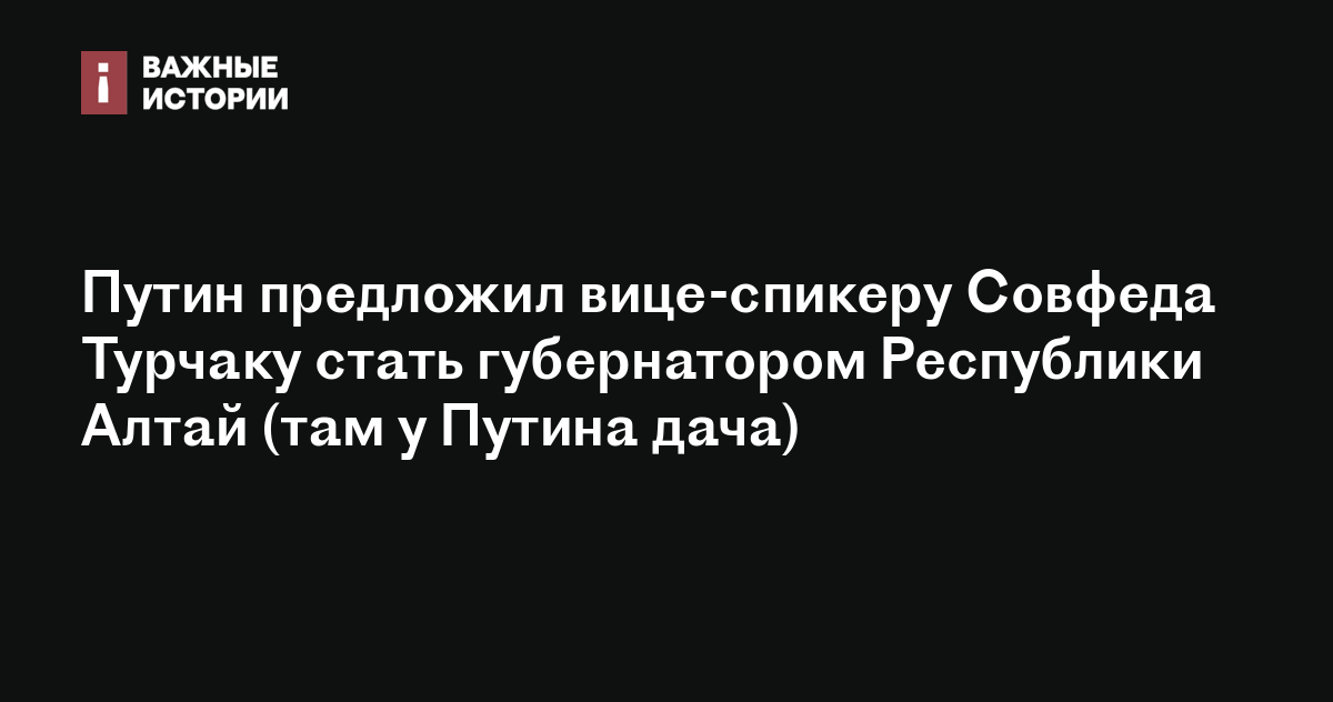 Путин предложил вице-спикеру Совфеда Турчаку стать губернатором Республики Алтай (там у Путина дача)
