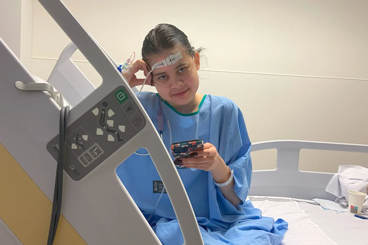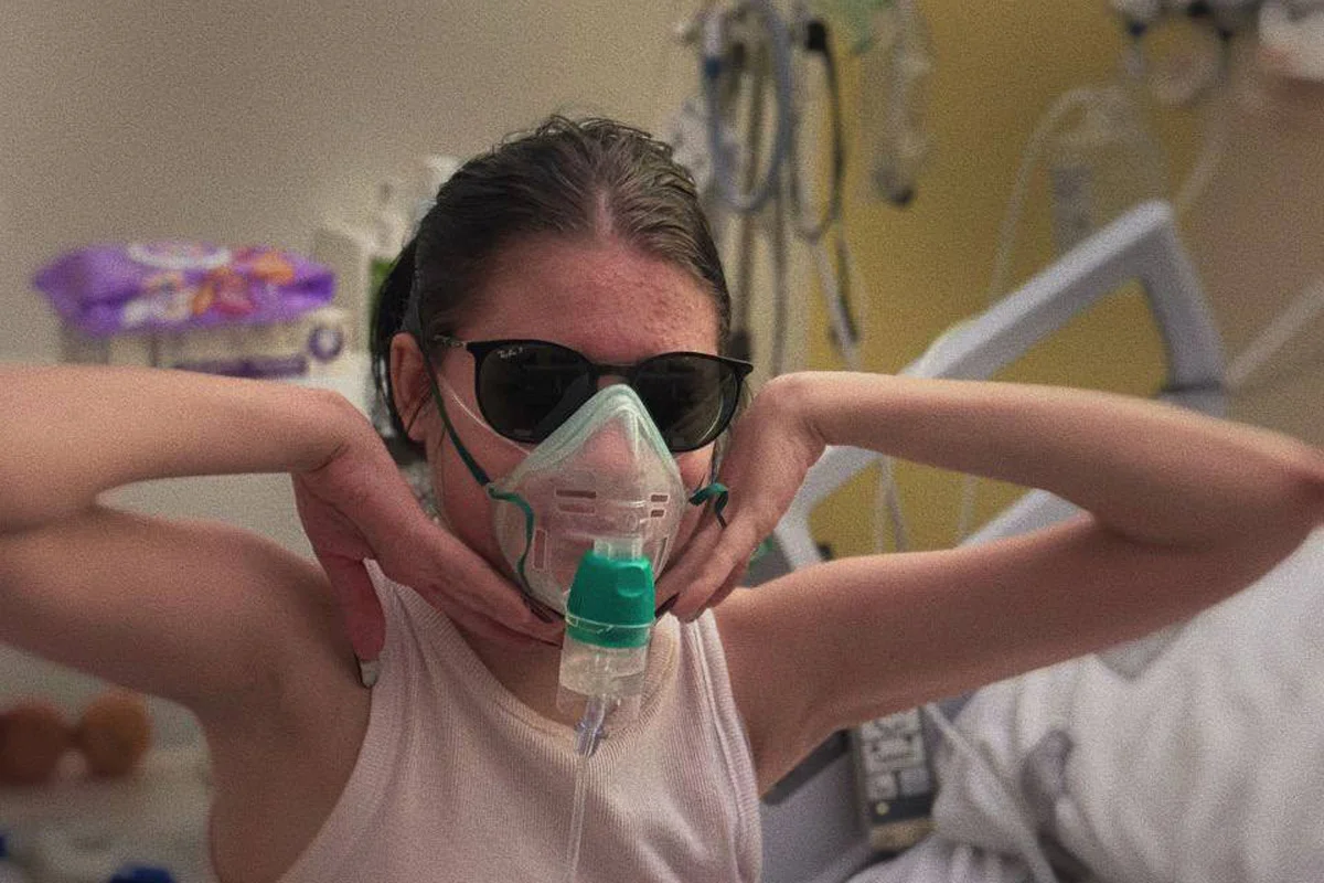 Тася подключенная к высокопоточному кислороду. Фото из личного архива героини.