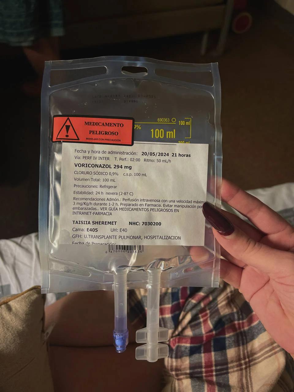 — [В России] я что-то подхватила и состояние начало ухудшаться. Меня положили в больничку, там и всё началось. Мне кололи дженерики, таблетки тоже были индийские и российские. Из-за войны в России нет нормальных лекарств. Эта штука в капельнице и в анализах оставляет осадок — такого быть не должно. Спасибо Путину и российской медицине, что у меня теперь еще и почки могут отказать. Как это всё вывести — я не знаю, — Тася показывает мне фото капельницы, на дне которой отчетливо видно нечто, похожее на толстый слой накипи.