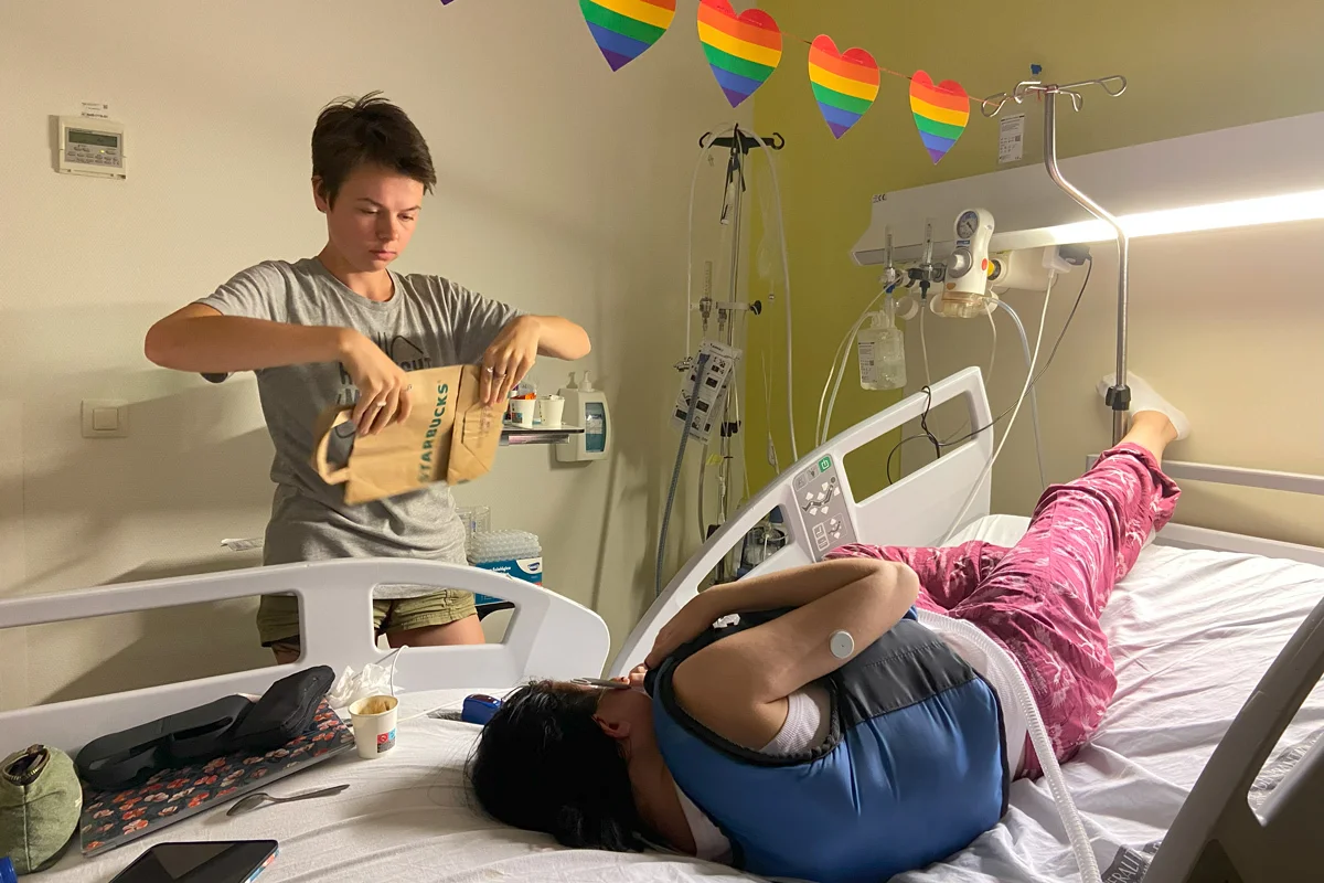 — В России нет такого, что ты можешь позвонить в фонд и сказать: здравствуйте, мне нужен физиотерапевт, готова оплатить его три раза в неделю, чтобы он со мной занимался, — объясняет Тася. — Есть пара человек, но они перегружены. Раньше приезжали израильтяне, европейцы, немцы, американцы, учили пациентов и их родственников оказывать им помощь в дренаже. Меня спас фонд «Кислород», который дал мне жилет и кислородный концентратор в Москве. Опять же, это построено на героизме конкретных людей. Это не система помощи. Мой врач [в Москве] — герой, он остается в России, лечит всех этих пациентов, не покладая рук. У него большой клинический опыт, он спасает всех этих товарищей, но спасать нечем. Можно быть сколько угодно классным врачом, всё знать, но если у тебя из инструментов палки-копалки, тебе будет плохо. Фактически его личный героизм и сила моего организма — вещи, которые нас спасли. Не антибиотики, система здравоохранения и система закупок, нет. Врач фактически подарил моему организму немного времени на восстановление. Если тебе нужна высокотехнологичная помощь, в Испании ты стабилен, а в России — на грани.
