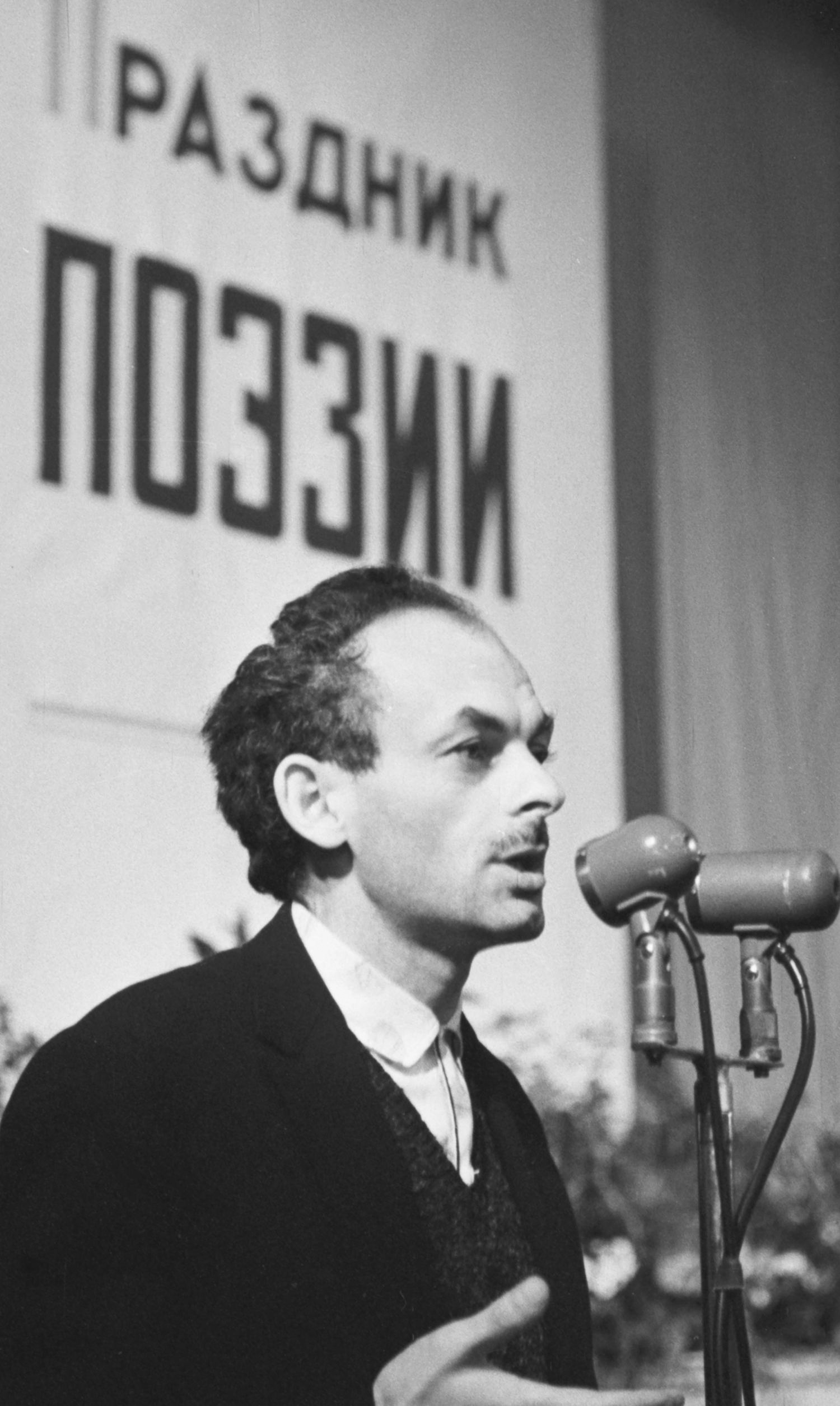 Еще в первом отделении записка: просят Евтушенко продолжить вечер на улице. Председатель объявляет, что он болен, поэтому невозможно. Попросили читать «с этой стороны», т. е. там, где окно. И во втором отделении трибуну перенесли. Женя сказал, чтобы чуть открыли окно. <…>