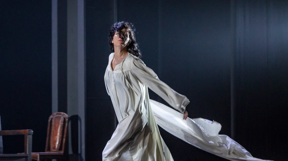 Исполнительница роли Анны — Эфрат Бен-Цур — женщина из того времени. Библейский точеный профиль, поникшие плечи, сумеречный взгляд, черные волосы, разделенные на косой пробор. Есть в ее Анне что-то от падшего демона Врубеля. «Демон сам с улыбкой Тамары». Но Туминаса интересует не только история падения, но и миг вознесения.